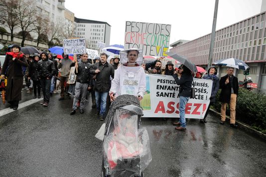 Dimanche 14 février, à Bordeaux, ils étaient environ 600 à manifester contre l’usage des pesticides. Certains portaient des masques sanitaires ou des tenues d’apiculteurs et brandissaient des pancartes réclamant la « protection de nos enfants ». Le succès de cette « marche blanche » sous la pluie a agréablement surpris ses organisateurs : la Confédération paysanne de la Gironde, plusieurs associations et collectifs (Alerte pesticides Léognan, Générations futures, Les amis de la Terre, Allassac ONGF).
