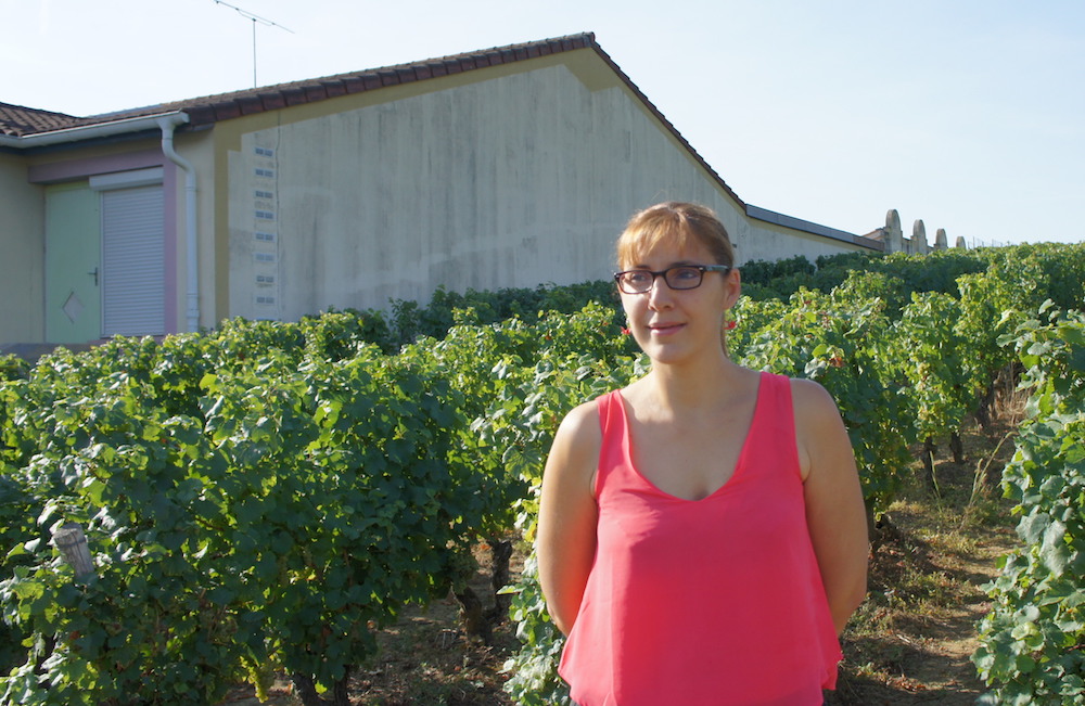 Marine Pasquier, la fondatrice du collectif anti-pesticides du Mâconnais. Photographiée devant l’école de ses trois enfants à Viré. L’école de Viré a été construite au milieu des vignes qui jouxtent notamment la cour. ©LB/Rue89Lyon