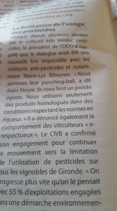 Dans le Journal du Médoc paru le vendredi 10 mars, dans l’article intitulé « 2016, le millésime dont nous avions besoin », le Président de l’Organisme de Défense et de Gestion porte encore une fois des propos diffamatoires à l’encontre du Collectif Info Médoc Pesticides, et se pose en victime. Une technique comme une autre afin d ‘éviter de répondre à nos interpellations sur le fond.