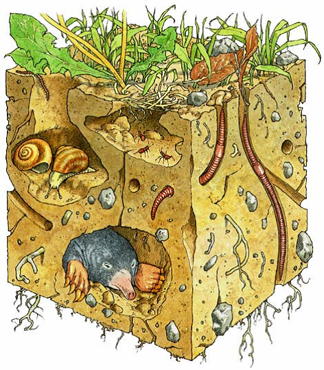 - l’activité des micro-organismes (bactéries, champignons), qui rendent assimilables les éléments du sol par les plantes