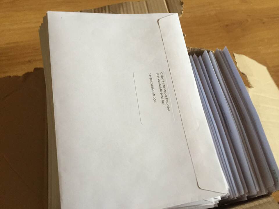 Le Collectif Info Médoc Pesticides a adressé une lettre, leur rappelant la législation, à l’ensemble des propriétés viticoles du Médoc, ainsi qu’aux appellations et aux caves coopératives. 532 courriers postaux au total !