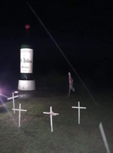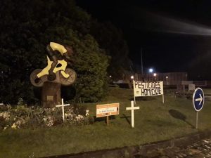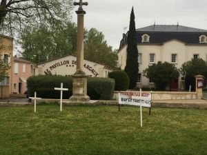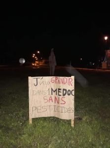 Pour que le Printemps des châteaux du Médoc soit un jour un Printemps sans pesticides et non un Printemps silencieux, le Collectif Info Médoc Pesticides, a bravé le froid et la pluie dès 5h ce matin.